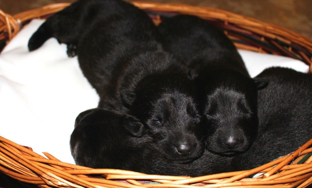 male and female bicolor and dark sable pups